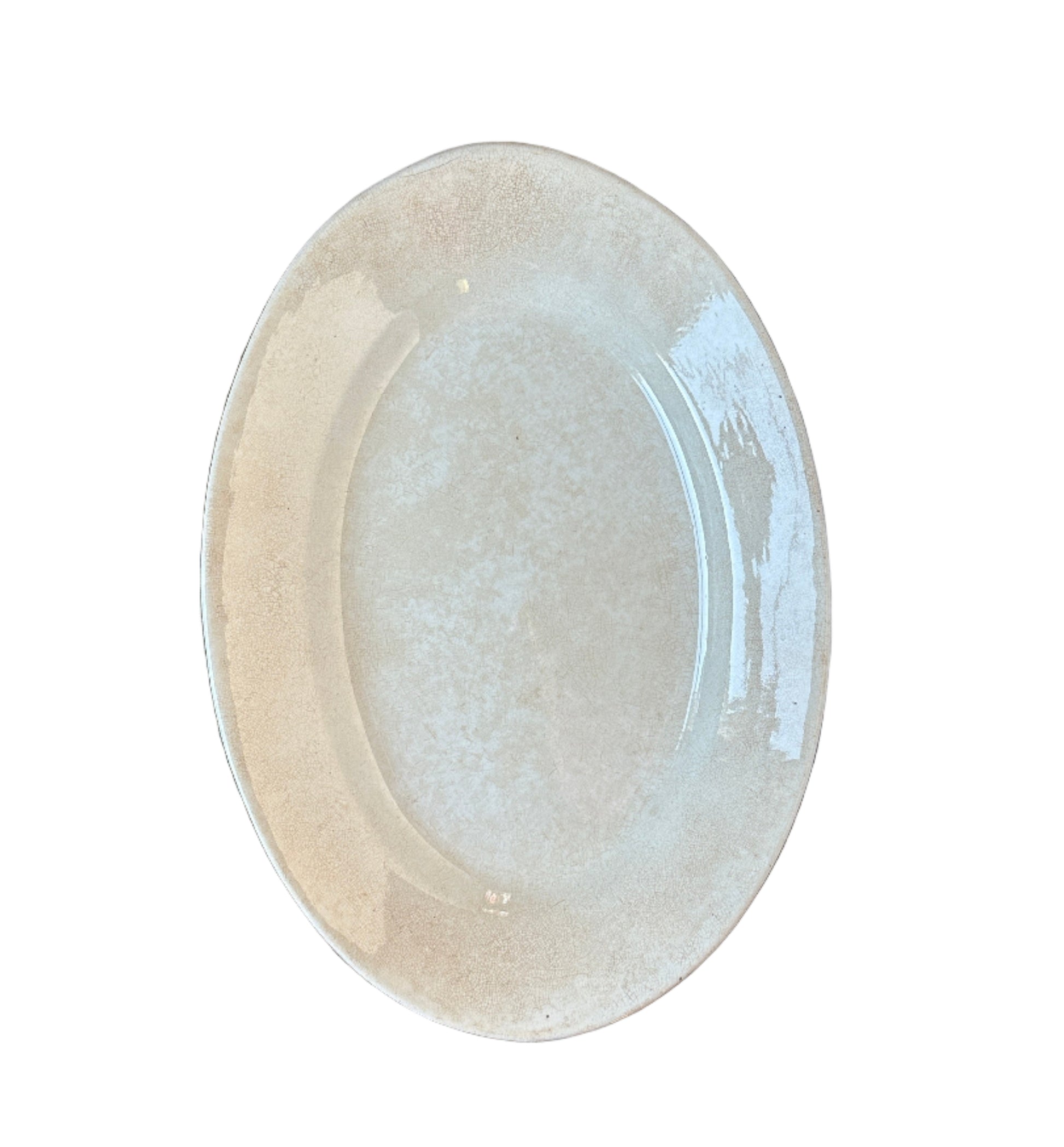 Large antique English James Edwards ironstone platter with beautiful crazing. Date range estimated between 1842 - 1861. Wear consistent with age.