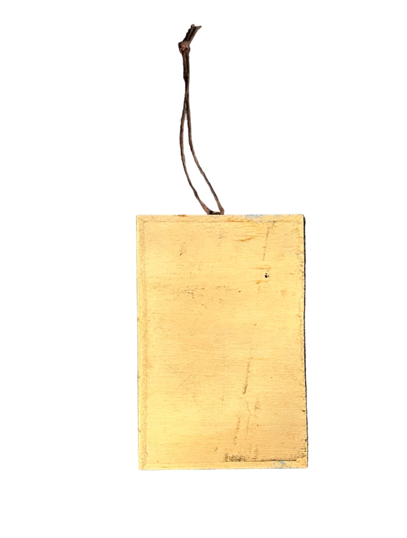 Small horse painting on wood. A small piece of rope is attached at the top, but can be easily removed and replaced with a hanging mechanism on the back. Signed CK15